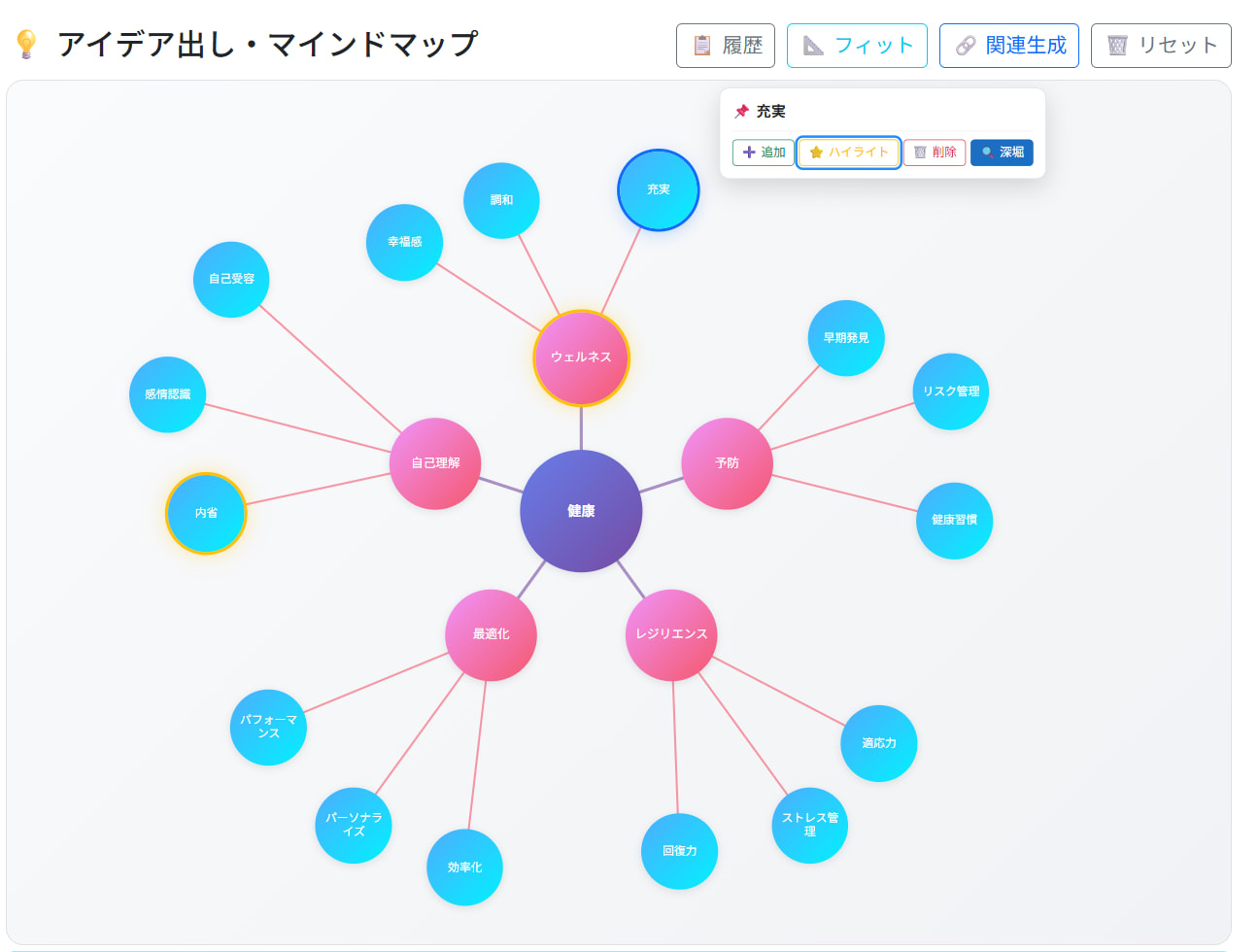 ちなみに、思考マップや深堀したデータはデータベースに格納しているので履歴を後から確認できます。