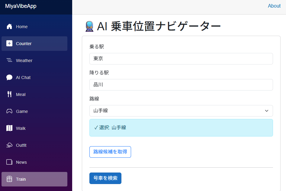 今日はタイトルの通り、AI 乗車位置ナビゲーターアプリを作りました。