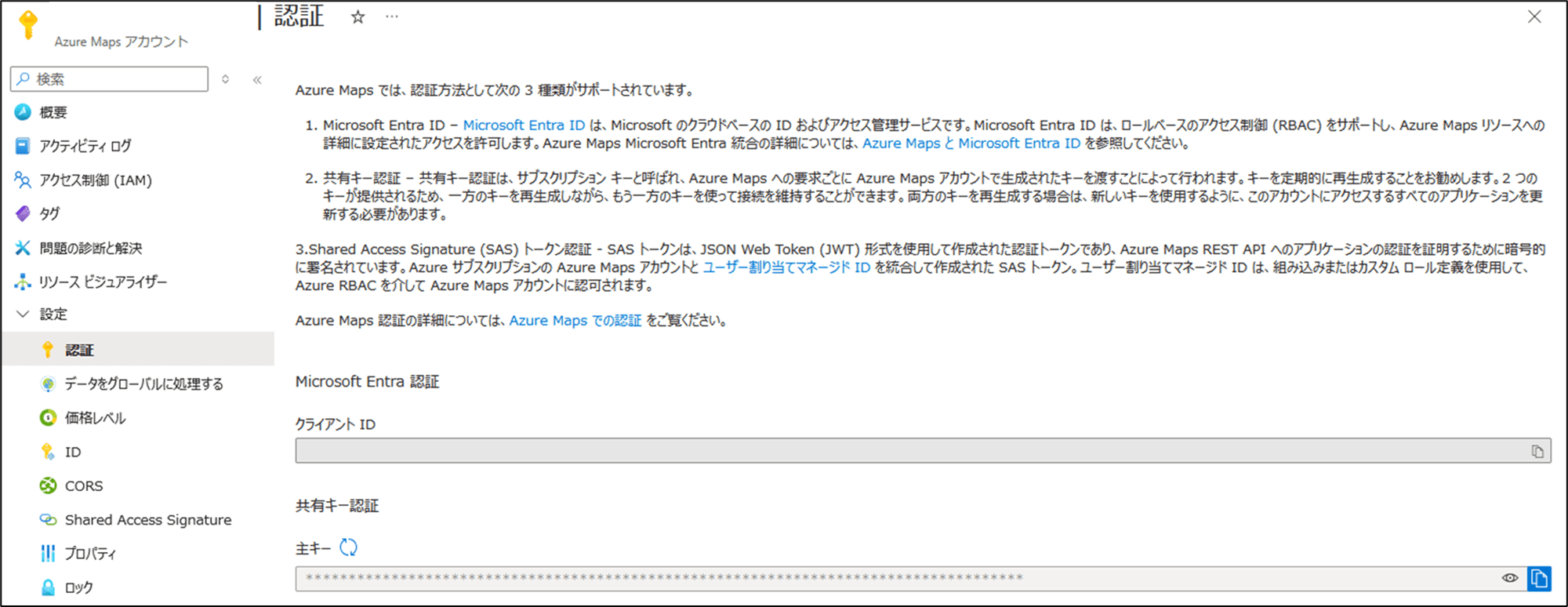 API キー(というか認証キー)が Azure リソース側から取得が可能なので、こちらをキーとして定義し Azure Maps へ認証しています。